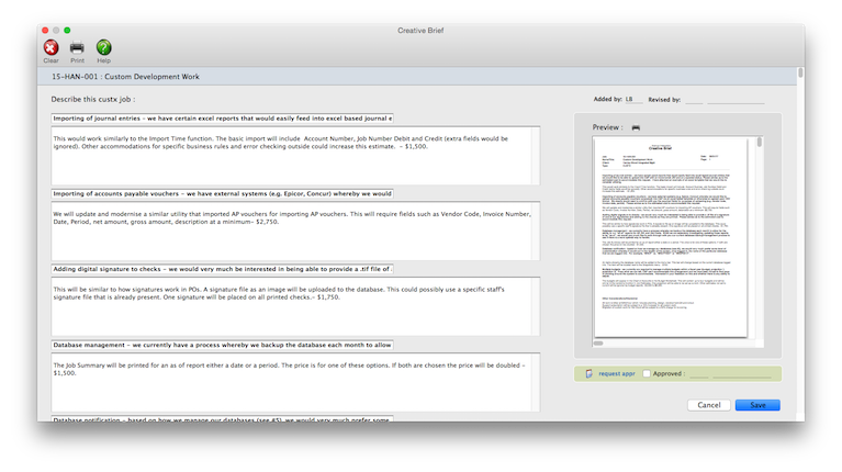 With Clients & Profits, the creative brief is an integral function of the electronic job jacket.