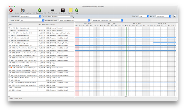 To use the production planner, choose Jobr > Production Planner (Timelines)