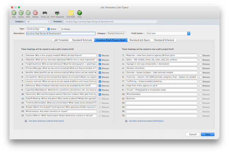 the job. This way, the creative briefs will be consistent for all jobs of the same type.