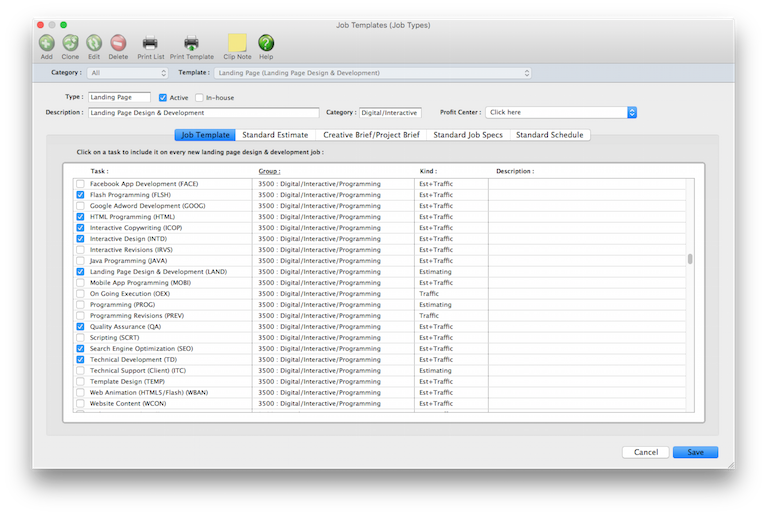 • Job templates can be grouped by categories (e.g., advertising, creative, admin, events,