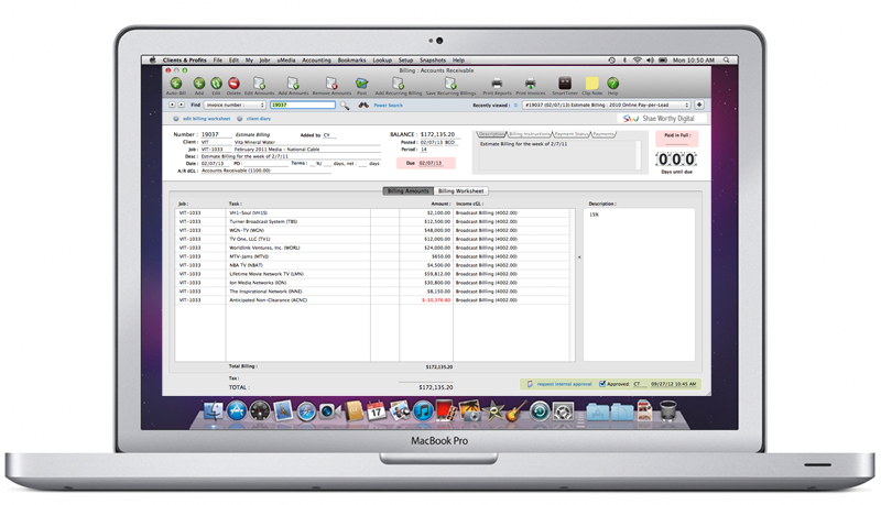 | Because if the client doesn't pay them, you do. Tracking time, purchases, and expenses are easy and foolproof. You'll see in real time what it took to finish a job. | It just takes a few clicks. Invoices are made from job tickets so there's nothing to rekey, ever. It's fast, exceptionally accurate, and remains unashamedly flexible. | Only Clients & Profits is built on an integrated agency-proven accounting system that syncs jobs, costs, checks, and billings into real-time financial, profitability, and productivity reports. |